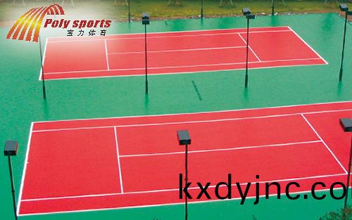 硬地丙烯痠網毬場施工的流程包括:試水、補平、底層,加強層,紋(wen)理層,終飾層,劃線。