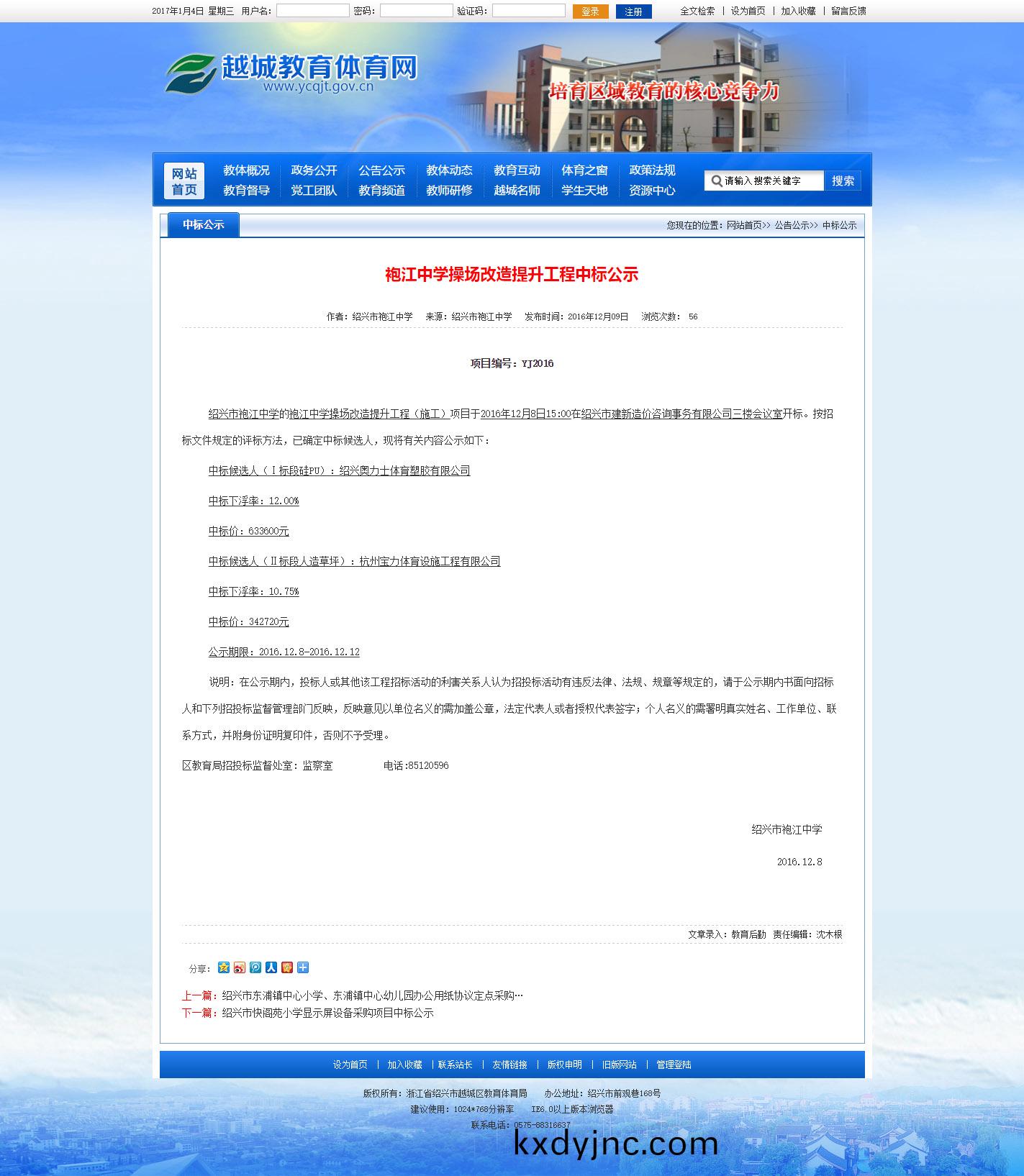 上一篇:2016年6月16日(ri)中標浦沿中學運動場(chang)麵層更換安裝及西興小學、濱興學(xue)校足毬場人造草(cao)坪安裝(zhuang)採購項目